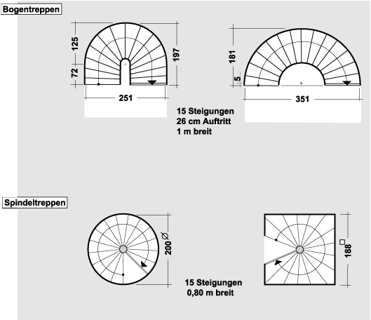 Die Bemassung ist so gewählt, daß bequeme Treppenläufe entstehen.