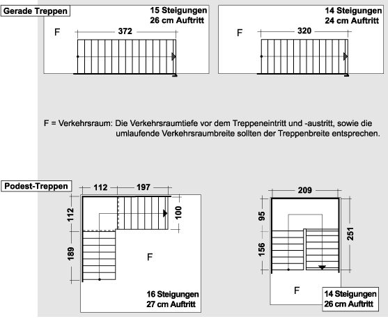 Die Bemassung ist so gewählt, daß bequeme Treppenläufe entstehen.